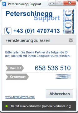 Der Peterschinegg Online Support ermöglicht uns einen Zugriff auf Ihren PC zum Zweck der Fernwartung.