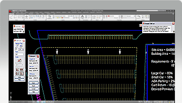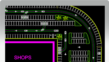 Die erweiterten Funktionen und integrierten Parkplatznormen von ParkCAD® ermöglichen das Entwerfen unterschiedlichster Parkplätze in nur wenigen Minuten.